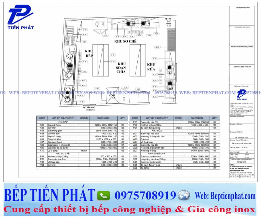 Bản vẽ bố trí Bếp Tiến Phát tại Happy Deli