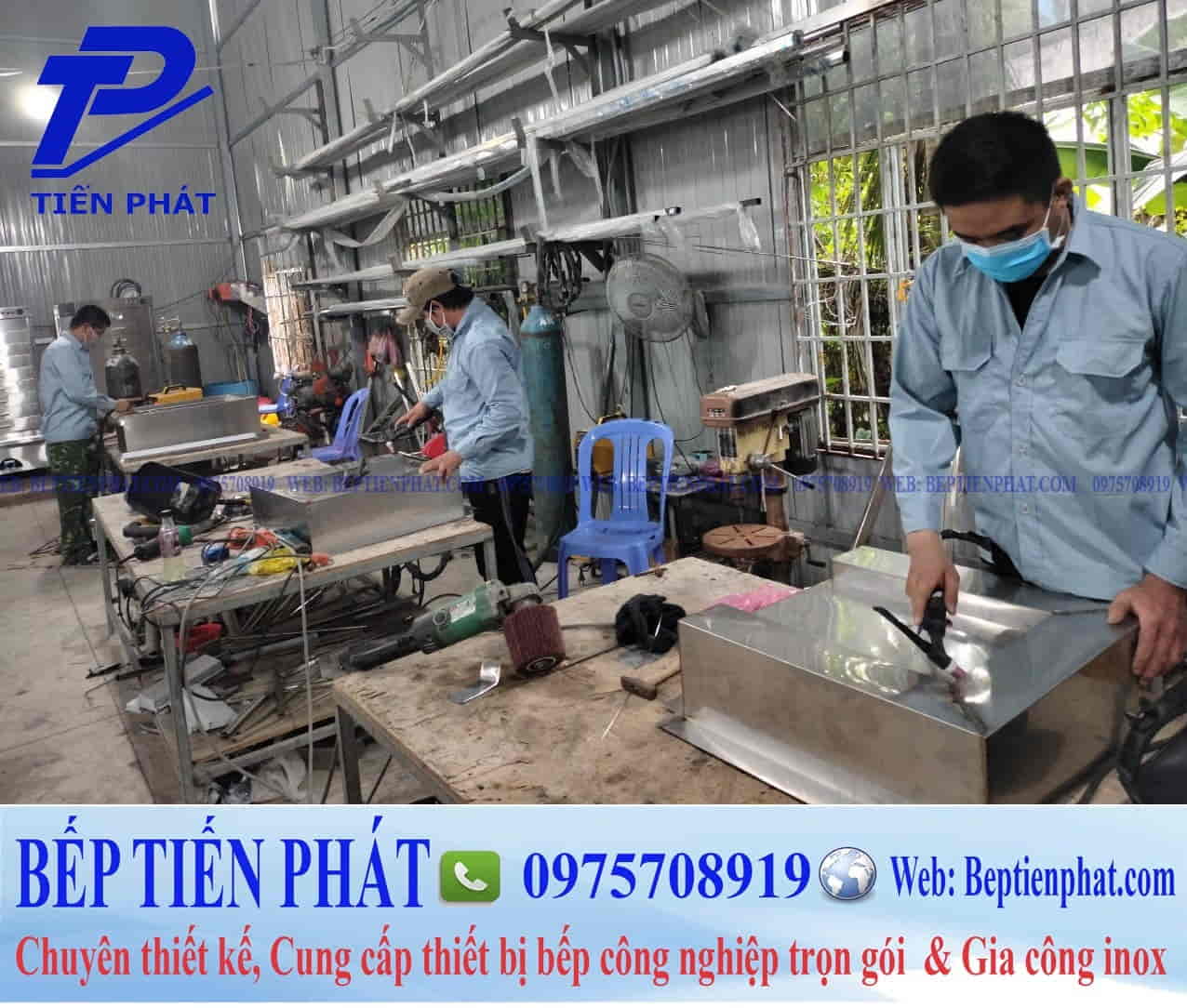 Tiến hành thi công bếp công nghiệp: Sau khi ký hợp đồng Bếp Tiến Phát sẽ tiến hành thi công. Các thiết bị như bếp, tủ, bàn, chậu,… sẽ được sản xuất, lắp đặt theo đúng bản vẽ. Hệ thống điện, nước cũng được đấu nối theo tiêu chuẩn để đảm bảo an toàn.