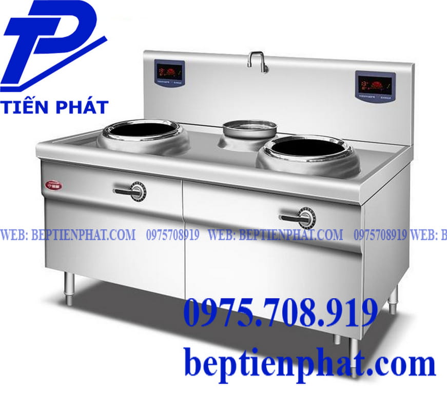 - Dòng sản phẩm bếp từ đôi lõm chảo rời tại bếp Tiến Phát với công suất đa dạng: 8KW, 15KW, 20KW. Kích thước bếp là 1600x900x800/1150 mm. Kích thước này có thể linh động thay đổi tuỳ theo diện tích thực tế của bếp.