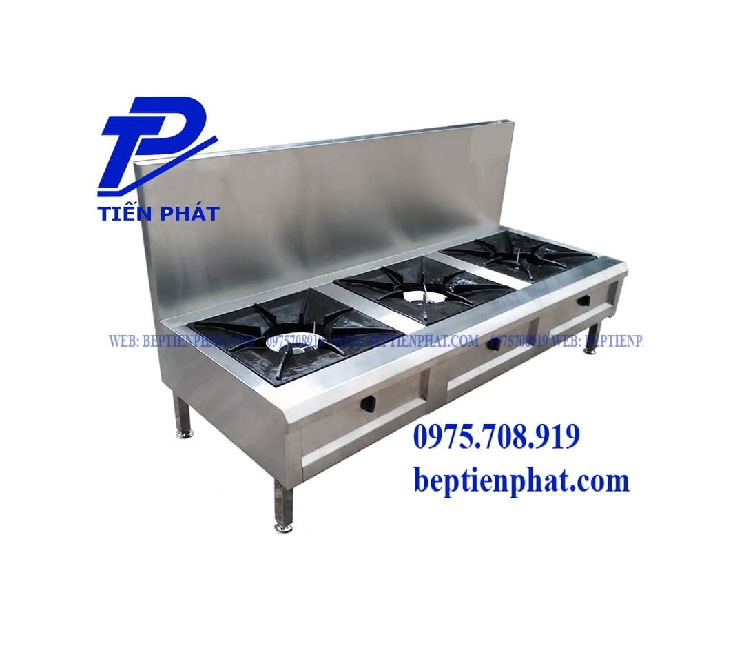 -Có 3 họng đốt , 1 vòi  cấp nước ,chân tròn 50