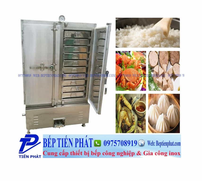 Tủ hấp cơm công nghiệp 20 khay dùng gas