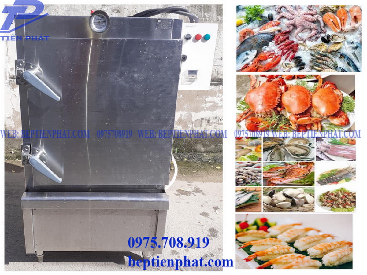 Tủ hấp hải sản 6 khay tại Bếp Tiến Phát giúp hấp hải sản nhanh, thơm ngon, bắt mắt