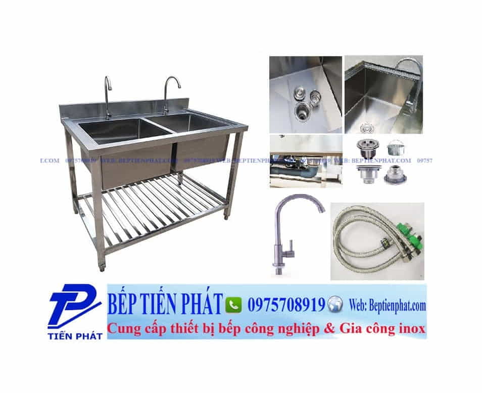 Chậu rửa inox công nghiệp 2 hộc có kệ song dưới
