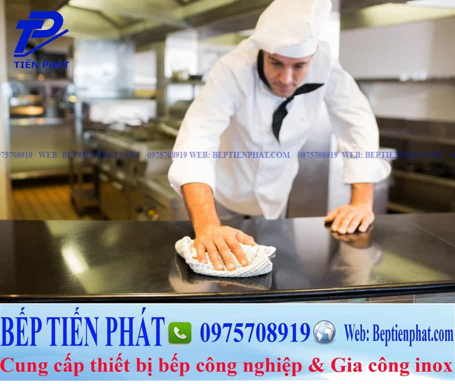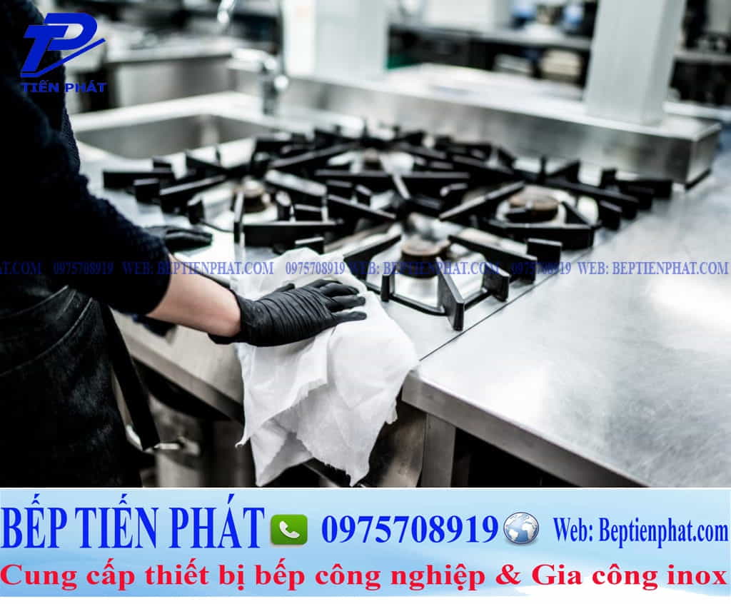 Hầu hết, bếp công nghiệp điều được làm từ inox nên việc vệ sinh cũng khá đơn giản. Nhưng bề mặt bếp là nơi tiếp xúc nhiều với thực phẩm nên phải lau chùi ngay sau khi sử dụng. Bạn chỉ cần dùng khăn ẩm để lau ngay sau khi dùng, với trường hợp bếp Tiến Phát để lâu ngày thì có thể dùng dung dịch chuyên lau dọn bếp.